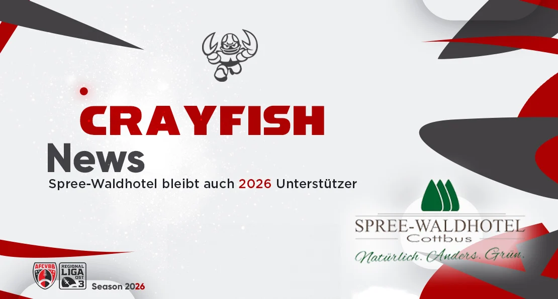 Die Cottbus Crayfish können auch in der Saison 2026 auf die Unterstützung eines bewährten und langjährigen Partners zählen: Das traditionsreiche Spree-Waldhotel Cottbus verlängert sein Sponsoring erneut und bleibt weiterhin fest an der Seite des American-Football-Teams.