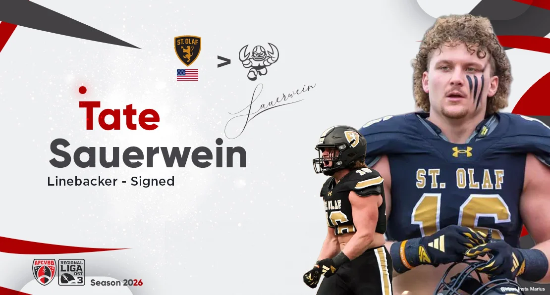 Die Cottbus Crayfish präsentieren ihre erste Importverpflichtung für die Saison 2026: Linebacker Tate Sauerwein wird das Team künftig verstärken.