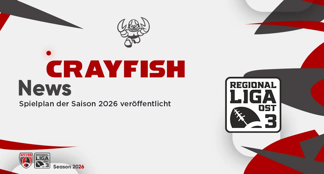 Die Saison 2026 in der Regionalliga-Ost steht vor der Tür – und unser Spielplan verspricht echte Highlights, packende Duelle und jede Menge Emotionen. Unsere Crayfish dürfen sich auf eine spannende Spielzeit freuen, in der von Anfang an alles gefordert sein wird!