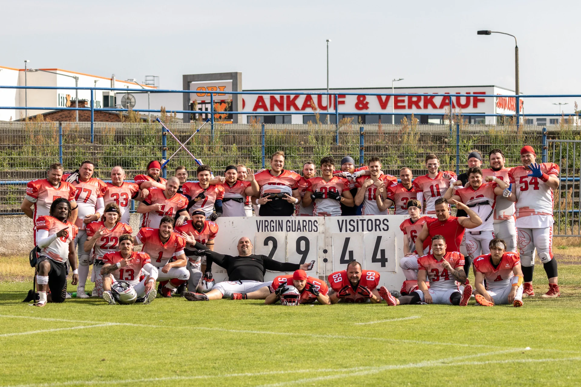 Bei extrem warmen Temperaturen und dazu noch mit einem stark dezimierten Team (ohne 9 Starter, davon 6 aus der Defense) reiste unser Team zu den Magdeburg Virgin Guards. Es versprach also eine spannende und umkämpfte Partie zu werden.