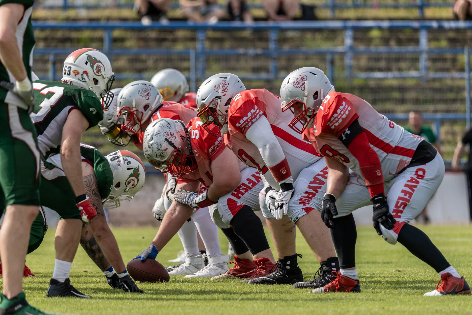 Mit einem erfolgreichen ersten Drive im dritten Quarter, war es erneut unser QB D.Viger der per Run den nächsten Touchdown (FG Good) erzielte und das Scoreboard klettere auf 21:30 für unsere Cottbus Crayfish. Aber auch unsere Defense hat sich nun stabilisiert und die Adjustments unseres Headcoach zeigten Wirkung. So konnte unsere Defense den ersten Drive der Gastgeber an der eigenen 48 Yard Line stoppen, welche den 4. Versuch ausspielten. Damit startete unsere Offense in einer guten Feldposition in Ihren neuen Versuch und bereits 3 Versuche später war es unser JP Mason der einen 50 Yard Pass von unserem Quarterback in der Endzone zum Touchdown fangen konnte. Field Goal durch R. Goldhammer war ebenfalls Good und somit hieß es zum Ende des dritten Quarter 21:37 für die Cottbus Crayfish.