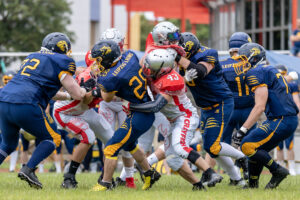 Aber auch die Die Defense der Gäste hatte etwas gegen weitere Punkte und bot eine starke Darstellung. So konnte man der Offense der Crayfish standhalten, und ein erfolgreichen vierten Versuch verhindern und die eigene Offense an der Lions 49 aufs Feld schicken.