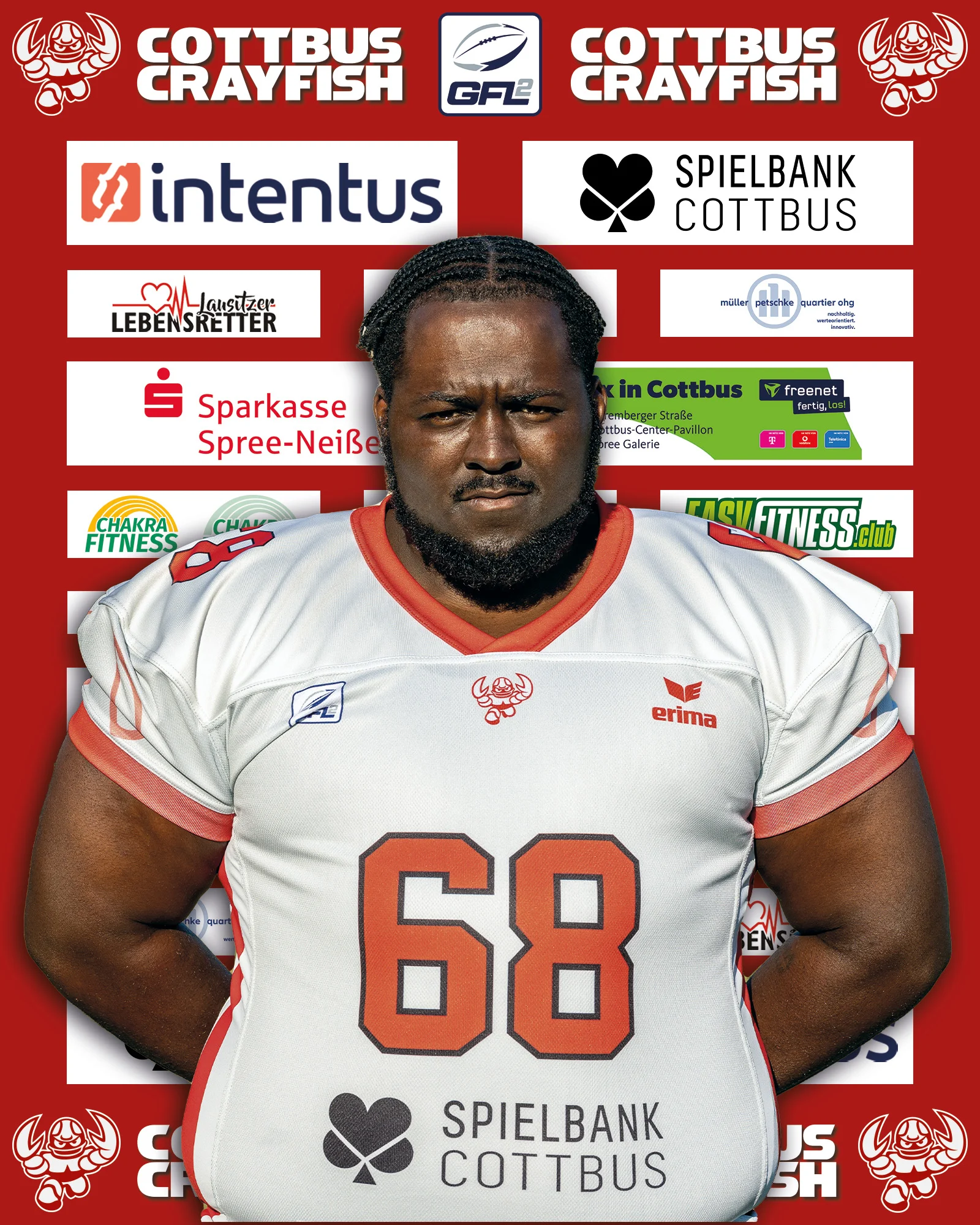 „I’ve decided to join the Crayfish because from what I’ve seen it’s a growing organization winning the league last year I want to help win GFL2 this season and make promotion to GFL1.“