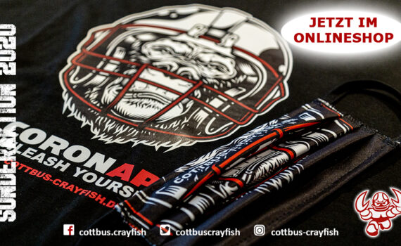 Jetzt erhältlich! Crayfish-Masken und T-Shirt im Corona-Design
