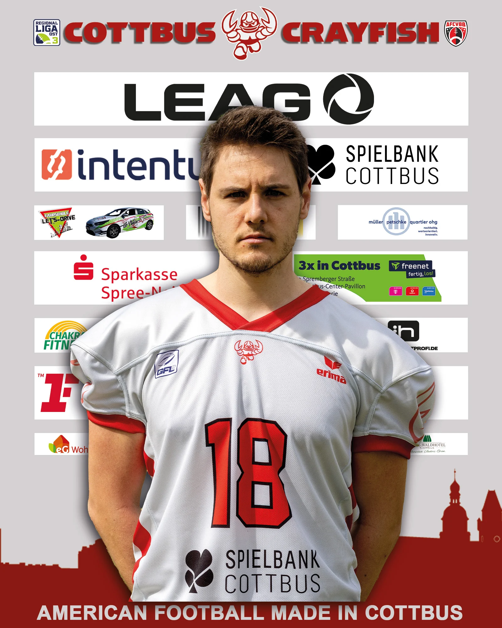 Cottbus Crayfish - American Football in Cottbus seit 1993. In unserer nun 30 jährigen Geschichte feierten wir Erfolge und Tiefschläge. Der Aufstieg 2011 in die GFL 2 und dem darauffolgenden 2. Platz war bisher der größten Erfolg. Leider stieg das Team nach 2 Jahren wieder in die Regionalliga ab.