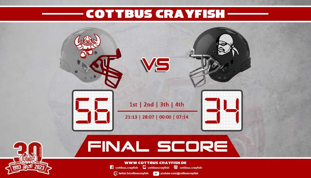 Cottbus Crayfish - American Football in Cottbus seit 1993. In unserer nun 30 jährigen Geschichte feierten wir Erfolge und Tiefschläge. Der Aufstieg 2011 in die GFL 2 und dem darauffolgenden 2. Platz war bisher der größten Erfolg. Leider stieg das Team nach 2 Jahren wieder in die Regionalliga ab.