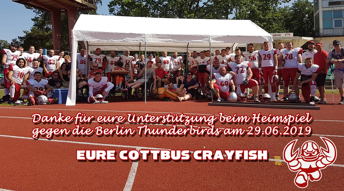 Cottbus Crayfish - American Football in Cottbus seit 1993. In unserer nun 30 jährigen Geschichte feierten wir Erfolge und Tiefschläge. Der Aufstieg 2011 in die GFL 2 und dem darauffolgenden 2. Platz war bisher der größten Erfolg. Leider stieg das Team nach 2 Jahren wieder in die Regionalliga ab.
