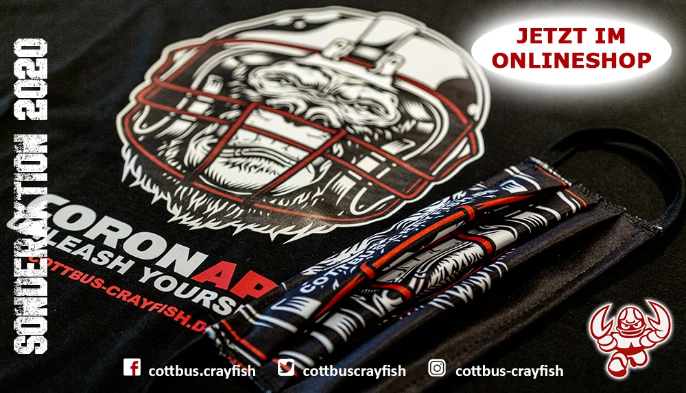 Jetzt erhältlich! Crayfish-Masken und T-Shirt im Corona-Design