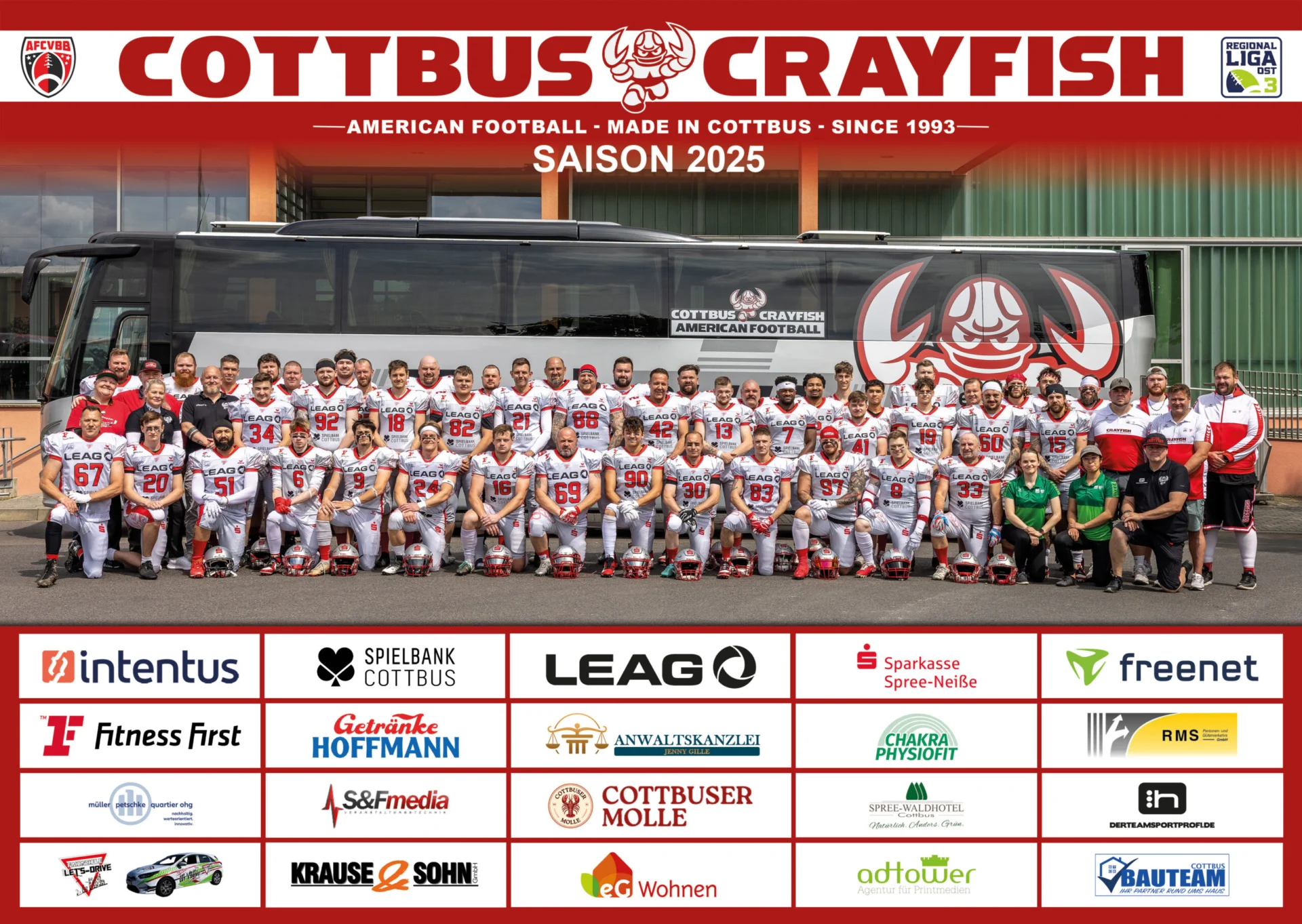 Das offizielle Mannschaftsfoto der Cottbus Crayfish der Saison 2025.
